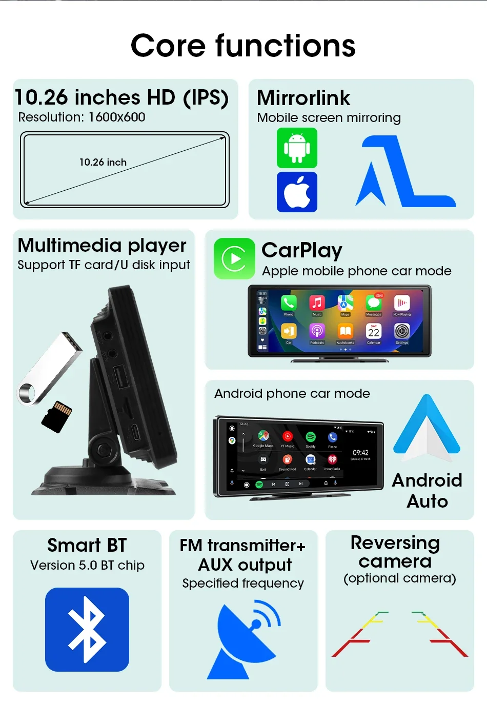 • 10.26 inches of High-Quality Display :The 10.26 inches of high-quality display provides clear and detailed visuals, making it easy to navigate through your music and videos.