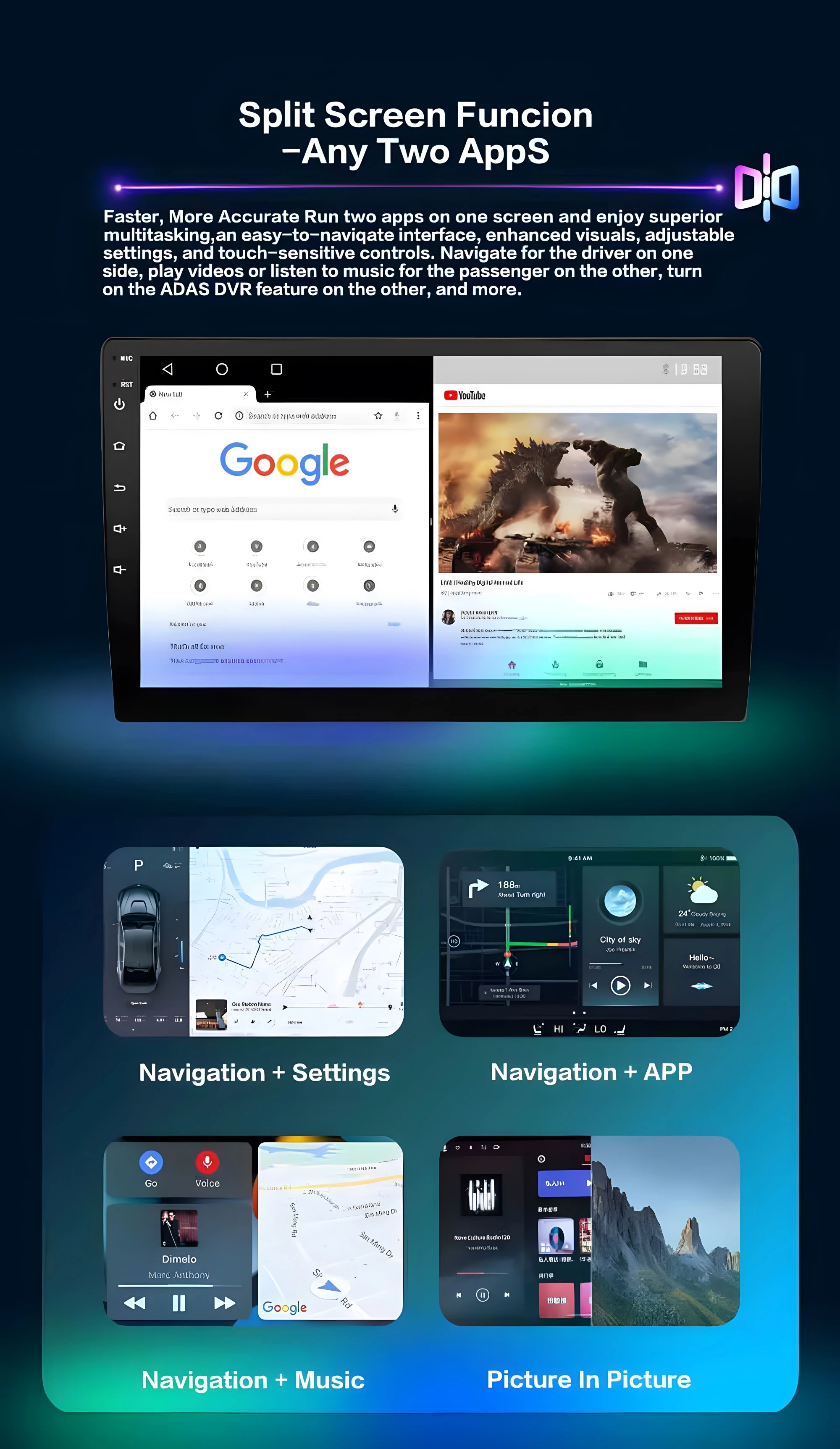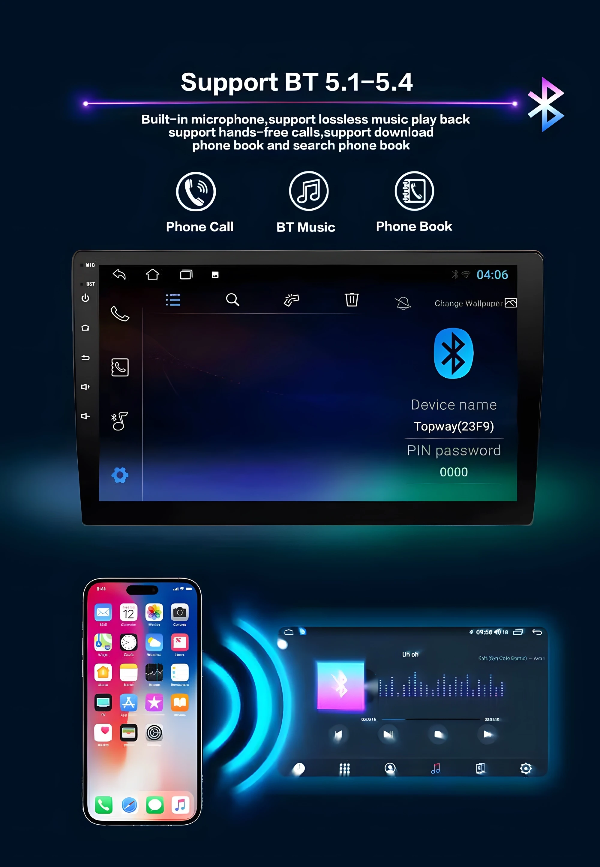 Bluetooth 5.0: Seamlessly connect your devices with Bluetooth 5.0 technology, enabling you to stream music, make calls, and enjoy wireless convenience while driving.