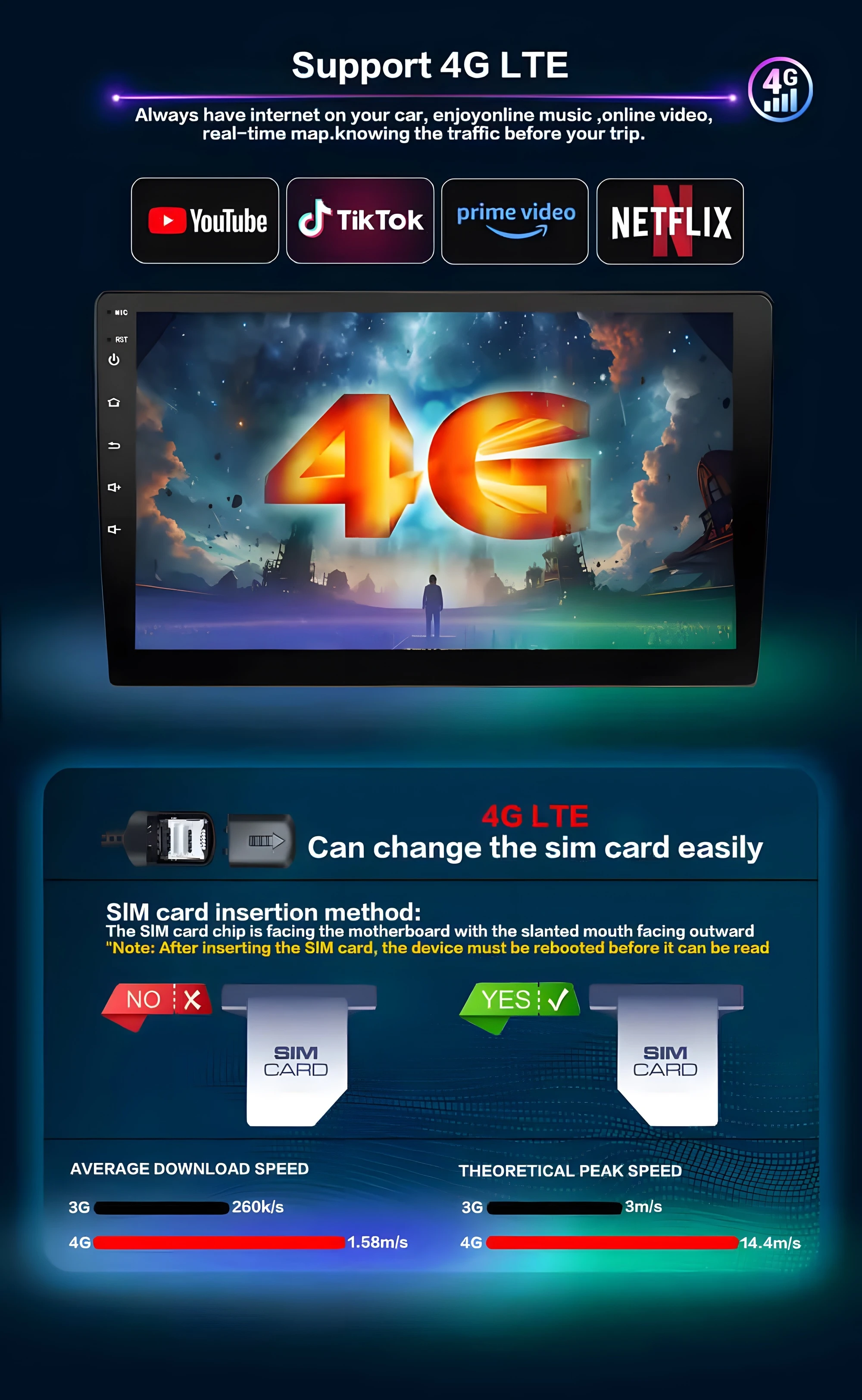 Bonus Gift: Order the 4G version of this car radio and receive a complimentary 720p AHD camera and microphone, enhancing your safety and convenience during your journeys.