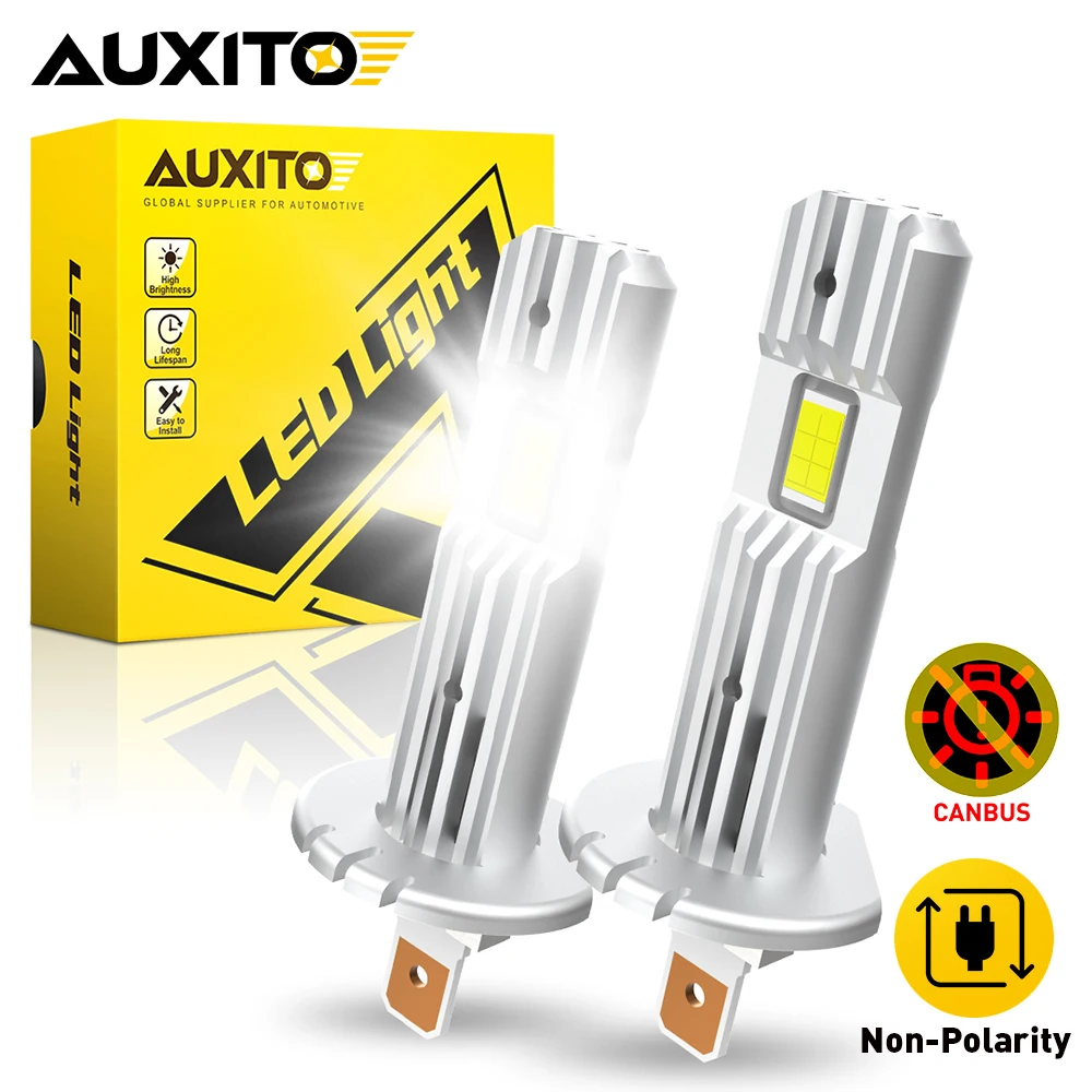 AUXITO 2Pcs Canbus LED Light Bulb H1 LED Headlight Mini Size Design 60W H1 LED Error Free Plug & Play New Upgrade Nonpolarity