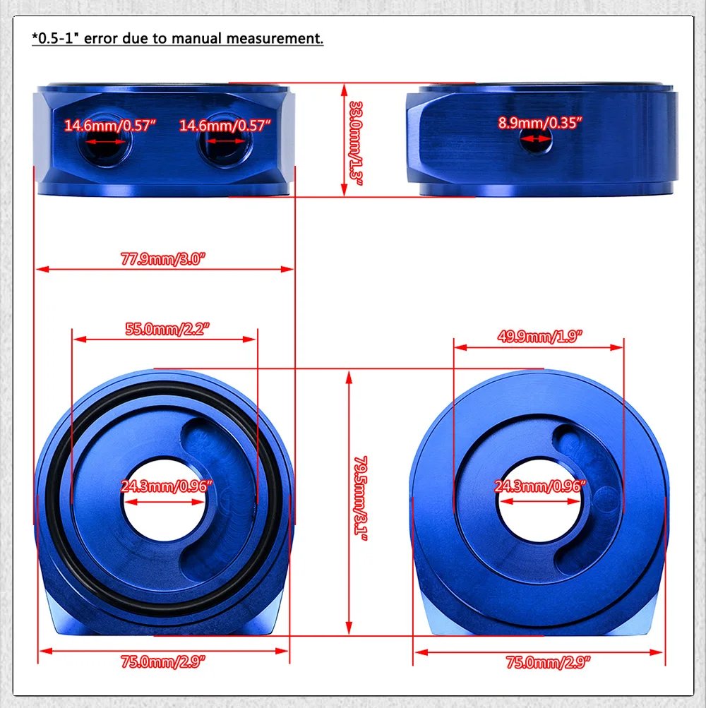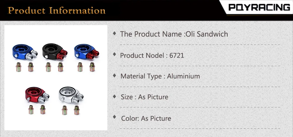PQY - Car Aluminum Universal Oil Filter Sandwich Adapter For Oil Cooler Plate Kit AN10 PQY6721