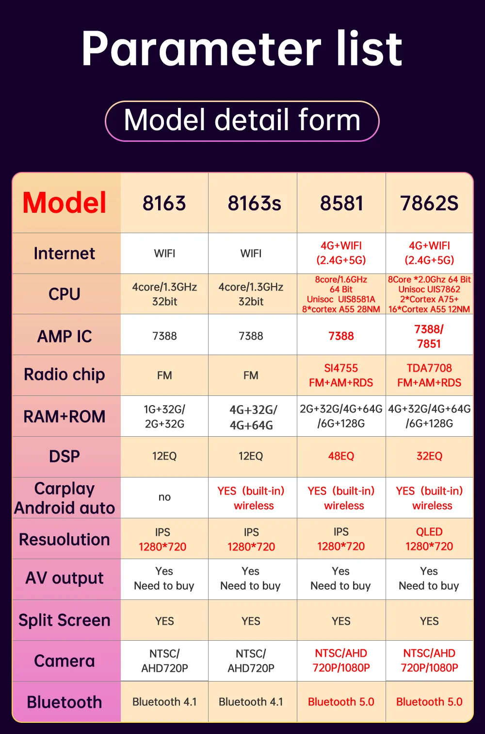 8163S-4G-64G, 8163S-Dvr32G-Ahd, 8581-2G-Dvr32G-Ahd, 8581-2G-32G, 8581-4G-Dvr32G-Ahd, 8581-4G-64G, 8581-6G-Dvr32G-Ahd, 8581-6G-128G |