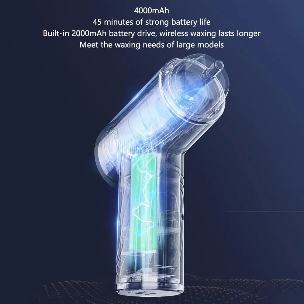 1. 【4000mAh】Strong battery life of 45 minutes: Built-in two 2000mAh battery drives, wireless waxing lasts longer, meeting the waxing needs of large models.
