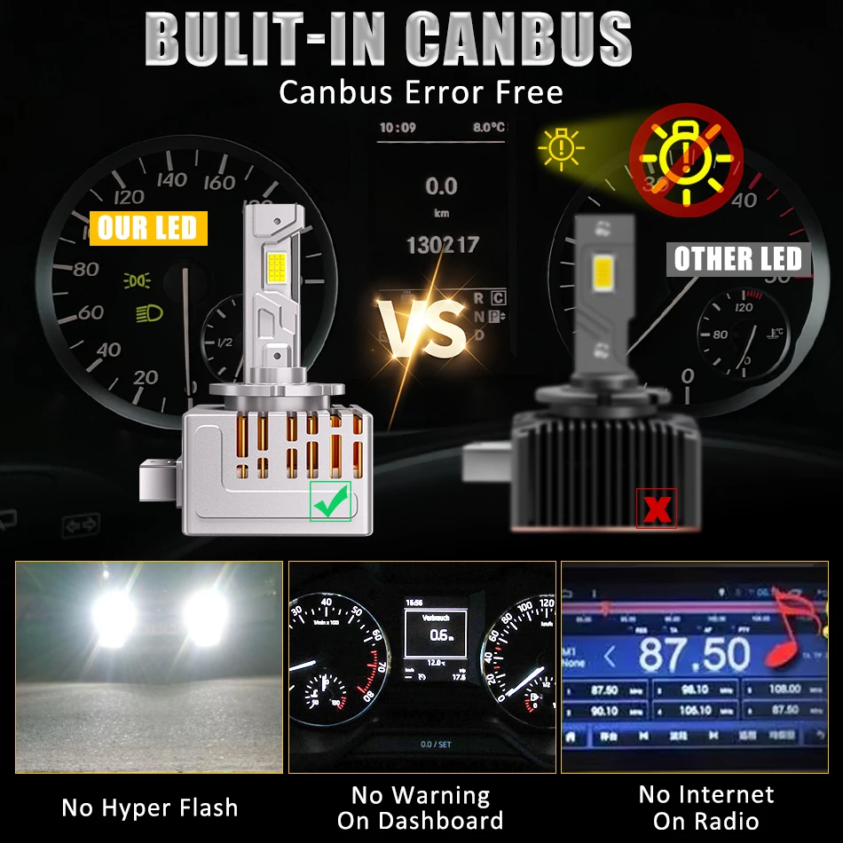 f your car is flashing or the bulb is not on, it may be because your car has a CAN bus system. Please buy a CANbus decoder for your car Main advantages: New vehicle headlamps with special functions: It is not suitable for some vehicles which need advanced canbus